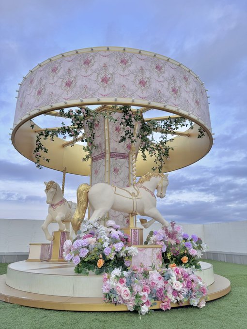 コロルのメリーゴーランドのピンクの薔薇デコレーションは10/31までなので、ハロウィンパーティーでもお楽しみ頂けます。